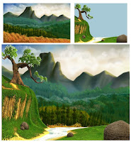 A imagem do fundo é pintura, e o primeiro plano é 3d.